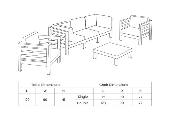 - Furniture frames are anti-corrosive, made from virgin extruded aluminium and powder coated.