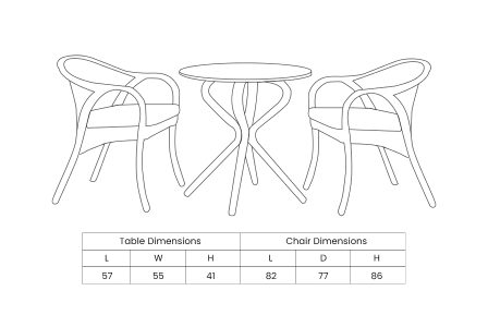 Enhance your outdoor experience with the Ellements Gothic Coffee Set, perfect for compact balconies and patios. This elegant set includes two chairs with plush seat cushions and a stylish round table consisting a durable HPL top.